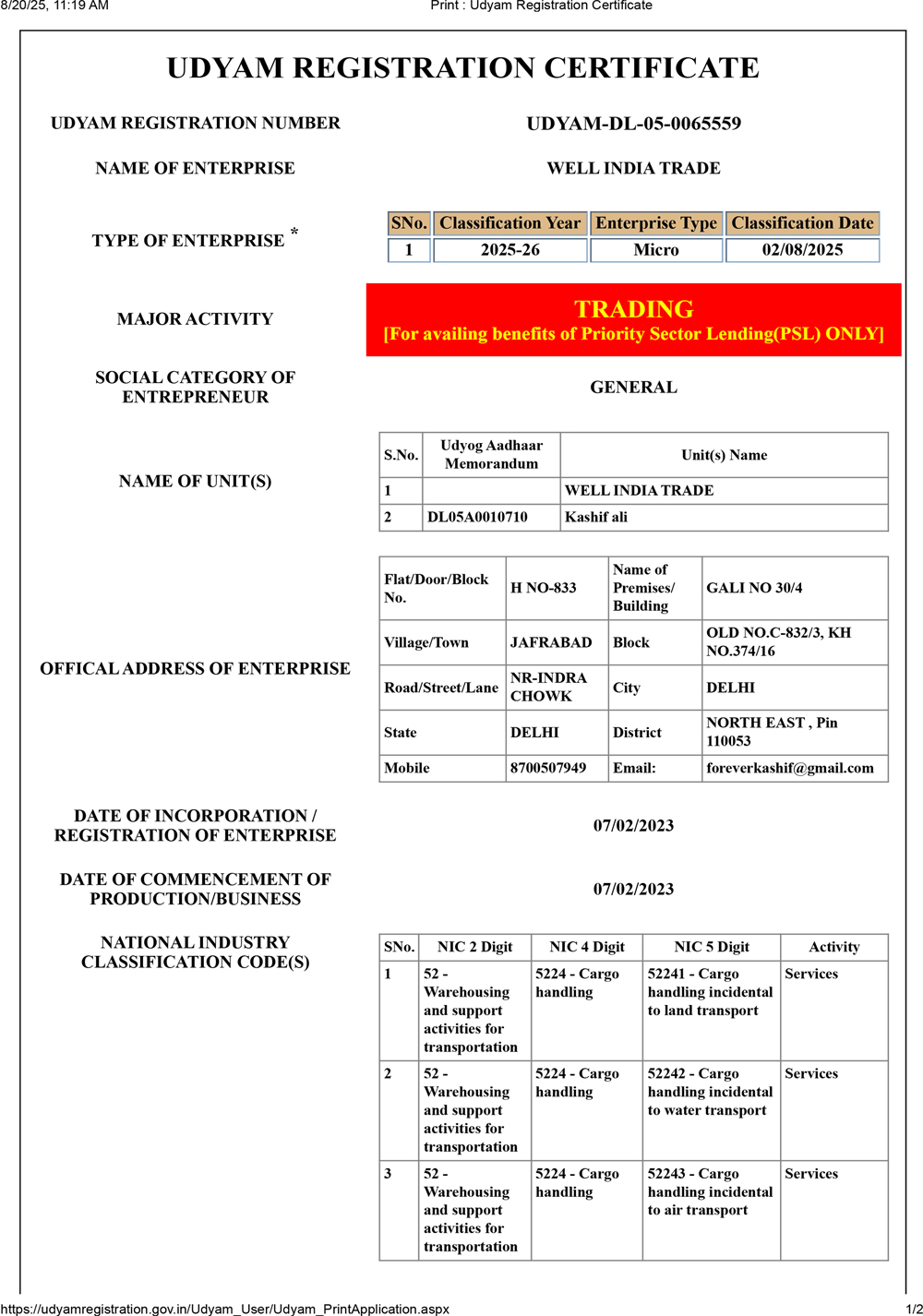 Well India Trade, established in the year 2023, is a registered company under MSME, the AP Chamber of Commerce, and holds a Central License – FSSAI. We operate primarily as a Merchant-cum-Manufacturer Exporter based in Delhi, India.