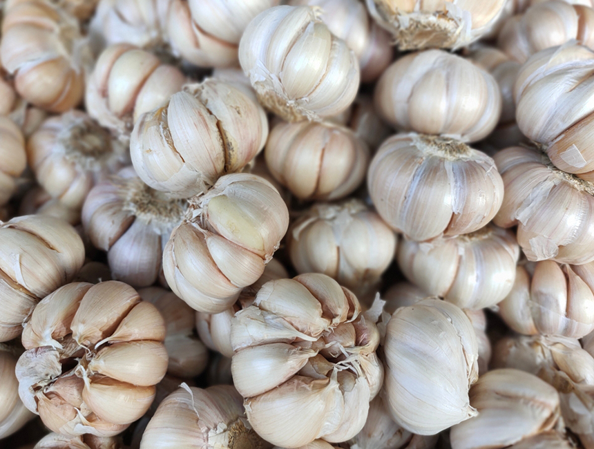Organic garlic bulbs rich in flavour, widely used in international cuisines.